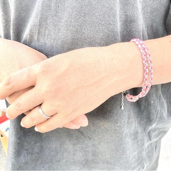 全12色の丸組二重ブレスレットです。このブレスは糸と鎖を合わせることにより今までにない色合いはもちろんの事、柔らかく肌あたりが非常に良いです。バリエーションも豊富で色合いが可愛く男性、女性問わずお使いになれます。