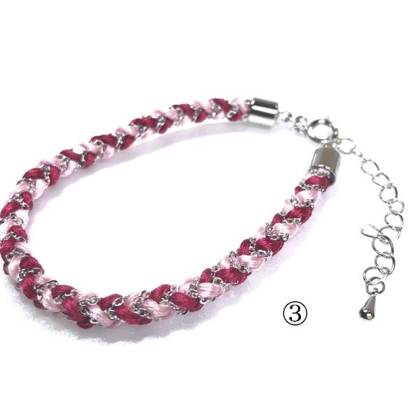 全10色の角組ブレスレットです。このブレスは糸と鎖を合わせることにより今までにない色合いはもちろんの事、柔らかく肌あたりが非常に良いです。バリエーションも豊富で色合いが可愛く男性、女性問わずお使いになれます。