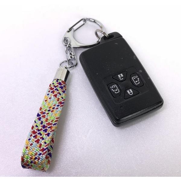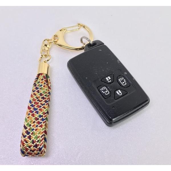 お守(厄除)キーホルダー 絣柄 組紐 手作り ハンドメイド 国産 伊賀 三重 帯締 帯〆 正絹 金 銀