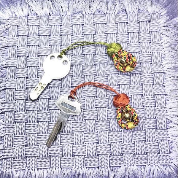 厄除の7色を使い小さい鈴組紐で囲った可愛い根付・ストラップです。職人が一つ一つ手作りで製作しています。鞄や鍵色んなものにお付けいただけるので目印にもなります