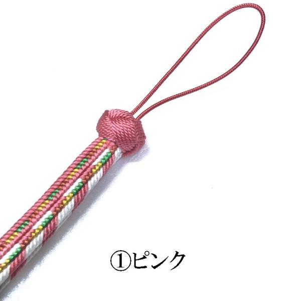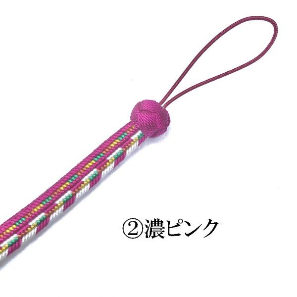 くみひもで帯締を作成し、帯締から短めのストラップを作りました。職人が一つ一つ手作りで仕上げています。