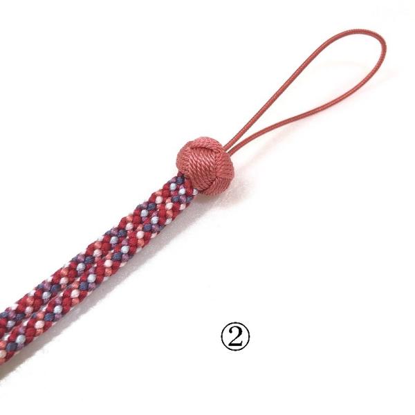 様々な柄を考えお作りしています。組紐はとても軽く丈夫なので、携帯電話、デジカメなどにお使いいただける長めのストラップです。