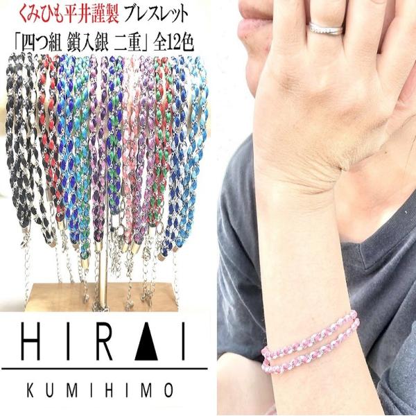 くみひもブレスレット 四つ組 鎖入銀 二重 メンズ レディース 可愛い カッコイイ 伝統工芸 国産 手作り 伊賀