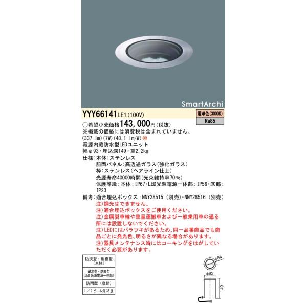 【当日発送OK!】YYY66141LE1 パナソニック アッパーライト LED 地中埋込型 φ93 広角 電球色 YYY66141LE1