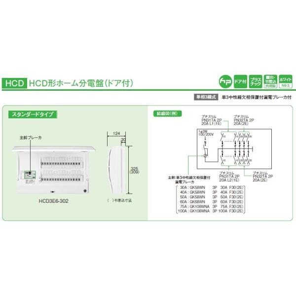 HCD3E6-182 主幹60A ドア付 ホーム分電盤 露出 半埋込共有型 スタンダードタイプ 日東工業 hcd3e6182