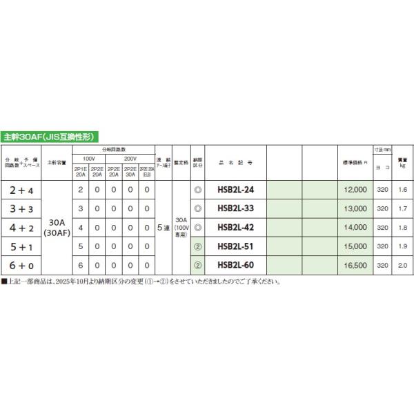 HSB2L-51 単相2線式 主幹30AF JIS互換性形 横一列 タイプ ドアなし ホーム分電盤 露出型 日東工業 hsb2l51
