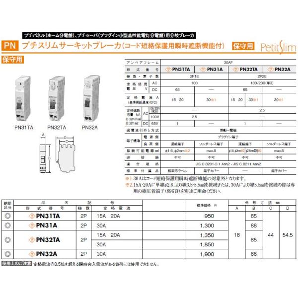 PN31TA 2P 20A 日東工業 プチスリムサーキットブレーカ プチパネル用 pn31ta2p1e20a