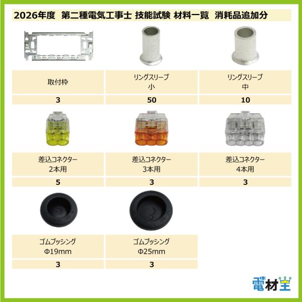 電材王 2026 年度 第二種電気工事士技能試験向けの練習用材料セットFです。