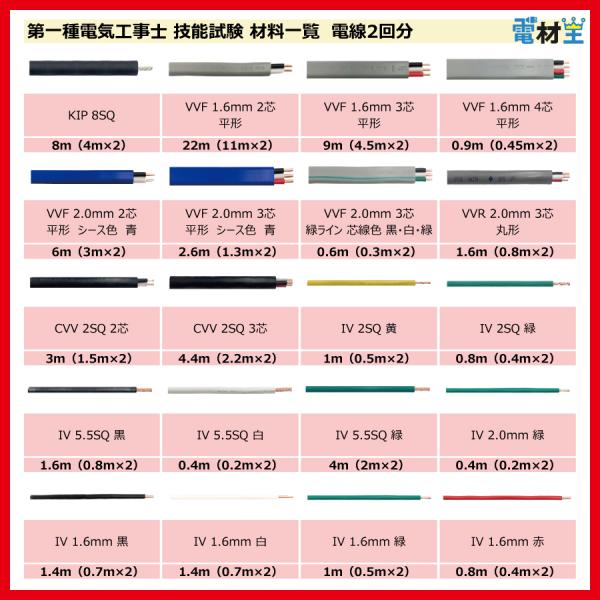 第一種電気工事士 技能試験 セット V 2026 全10問対応 電線2回分 電材王 令和8年度 電気工事士 1種 対策 練習 材料