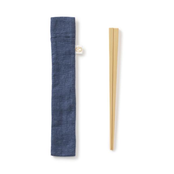 九州で作られた竹の弁当箸は、白竹の皮の部分を残して仕上げた美しい佇まい。18cmとお弁当用にちょうどいいコンパクトさで、持ち運びに耐えるよう箸先を太めにして強度を高めました。セットの箸袋には水や汚れに強い撥水加工の生地を使っており、使い終わった後の箸も安心して入れられます。