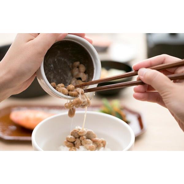 土の粒子による細かな凸凹と溝が納豆と器の間にほどよい隙間をつくり、いつもよりも少ない回数でふんわりと空気を含んだおいしい納豆ができあがります。