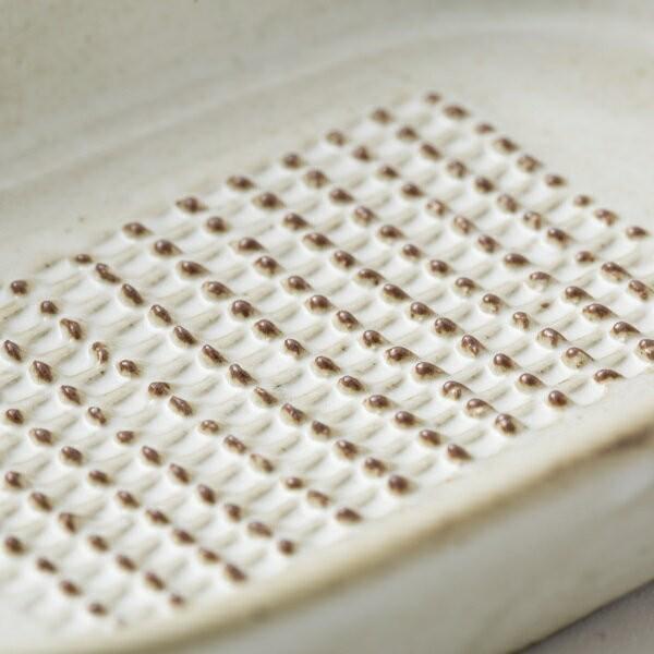 口当たりのいいおろし生姜ができる、陶製のしょうがのおろし器です。