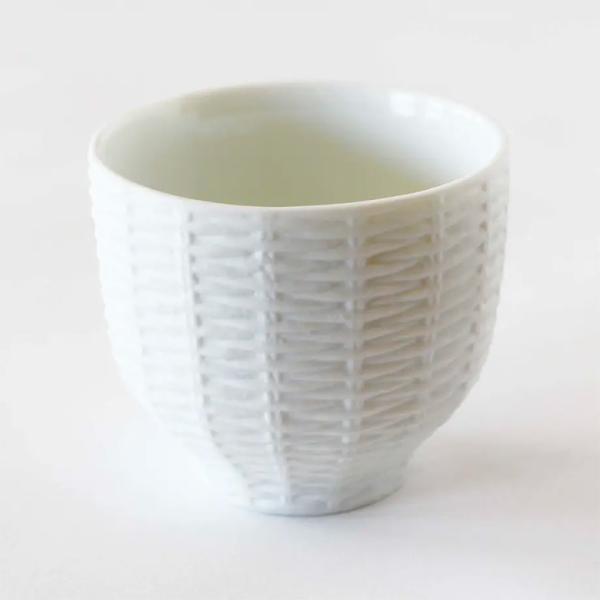 ニットみたいな柄の湯呑み 磁器 ホワイト パステル 可愛い 日本製 電子レンジ・食洗機可 ギフト 贈り物にも Trace Face Knit Wear