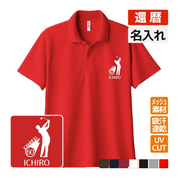 還暦祝い ドライポロシャツ 名入れ無料 記念品 (ゴルフシルエット) 男性・女性 ギフト プレゼント 両親へ 孫から サプライズ 誕生日 60歳 S M L LL