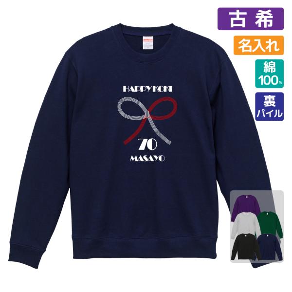 古希祝い 名入れ無料トレーナー 男性 女性 共通(水引)プレゼント スウェット 古希 お祝い 70歳の誕生日 S M L LL 3L