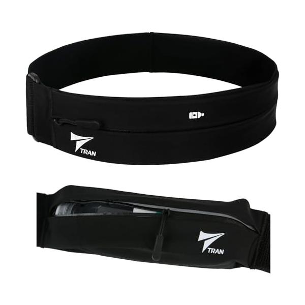 【日本代表選手が愛用】TRAN ランニングポーチ ウエストポーチ スマホポーチ【C1黒(L)ペットボトルポケットファスナーあり】