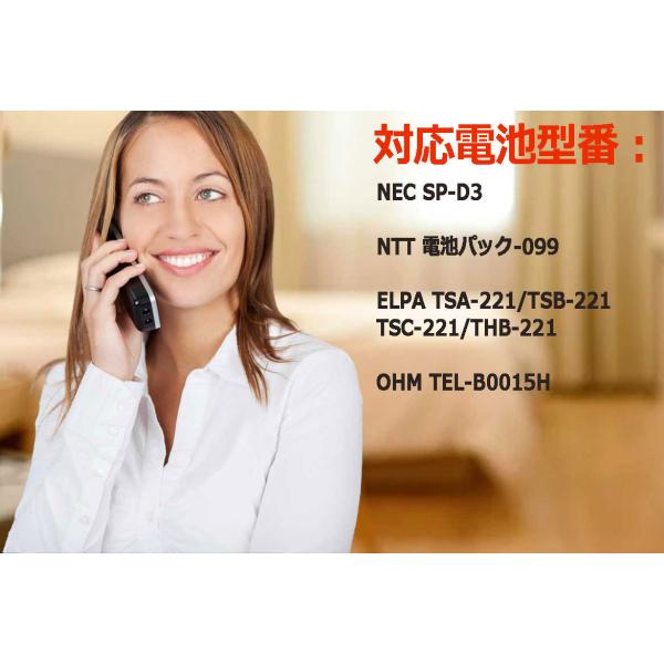NEC SP-D3 NTT CTデンチパック-099 電池パック-099 朝日電器 ELPA TSA-221 TSB-221 TSC-221 THB-221 OHM オーム電機 TEL-B0015H