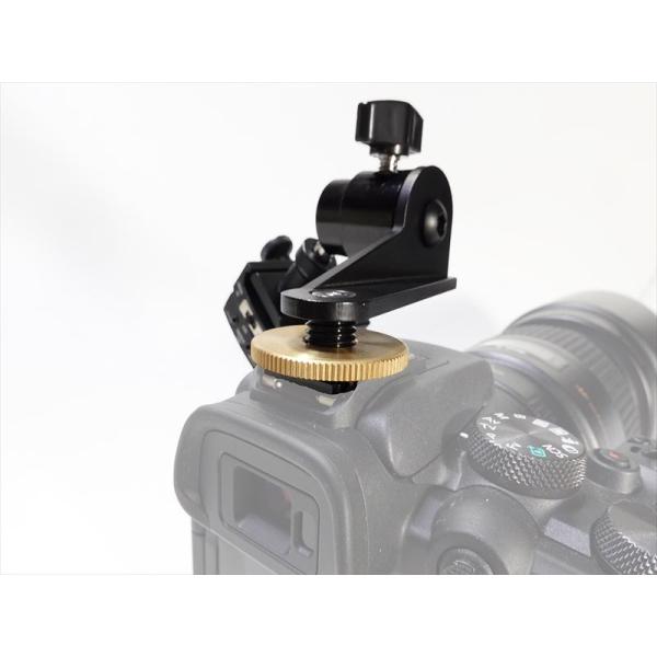 ■カメラへの固定は削り出しホットシュープレートと特殊ネジピッチで削り出した真鍮ダイアルで確実に固定されます。