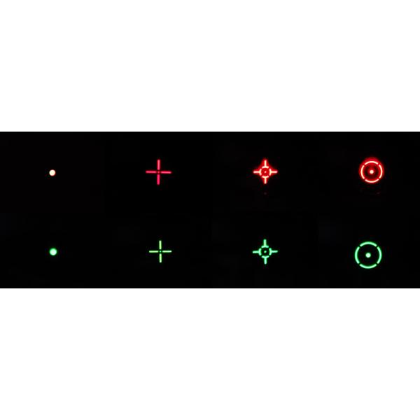 レティクルパターン4種、光量3段階、2色の選択肢がありユーザーの好みに対応できます。