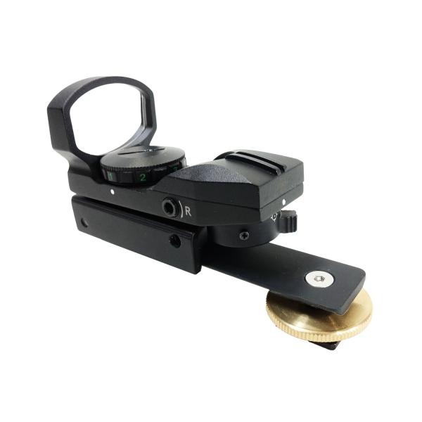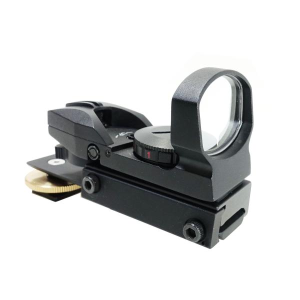 ドット形状が見やすく明るいマルチドットタイプの照準器本体をホットシューに取り付けができるようにしました。明るく見やすい2色、3段階輝度調節、4種類パターンドットが魅力です。