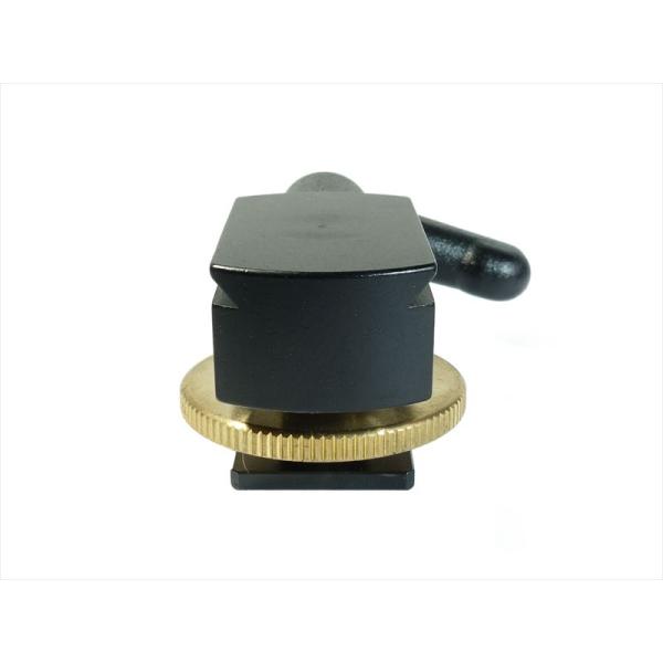 従来のホットシュー照準器は小銃や拳銃用の照準器をそのままホットシューにセットし、左右上下は照準器内の角度微調整機能で調整していました。しかし、兵器用の調整幅は極めて狭く、被写体までの距離(特に10m以内の場合)によっては角度調整ができないものが多く、不自由なまま使用していました。今回発売の製品はホットシューと照準器本体の間に上下±10°以上、左右は360°調整できるマイクロボールヘッドベースを新規開発し介在させることにより多くのカメラ・レンズに対応できるようになりました。また、600mmF4クラスの大口径レンズのフードを装着したままでも使える高さにデザインしました。調整は固定ネジ1本で行いしっかり固定すれば長期間その状態で使用できます。
