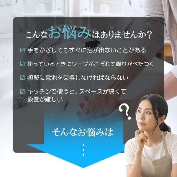 手やスポンジをセンサー下に差し出すだけで、自動で洗剤が吐出される非接触式。ボトルに触れずに使えるので衛生的。ウイルス対策や小さなお子様の手洗い習慣にも最適です。※黒いスポンジには反応しにくい仕様です。