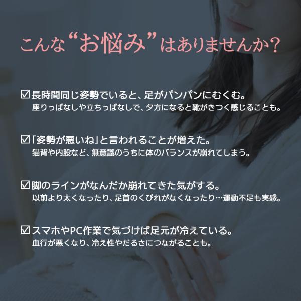 【美しさと健康を同時にサポート】履くだけで美脚・姿勢・健康の3方向からアプローチ。通勤や家事、オフィスでも、日常の一歩一歩がセルフケアに変わります。