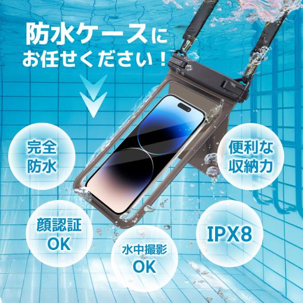高透明素材で水中撮影もバッチリ!タッチ操作や顔認証、通話もケースに入れたまま快適に。