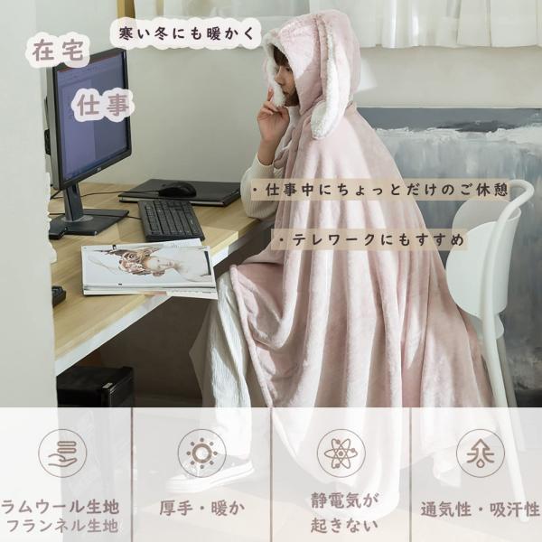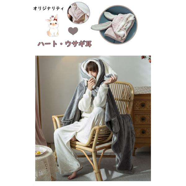 着る毛布 レディース ブランケット 着る毛布 かわいい フード付き ハート ボタン付き 前開き フランネル生地 暖かい ふわふわ 丸洗い ルームウェア 130x 120cm