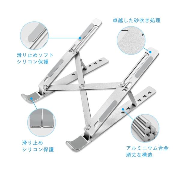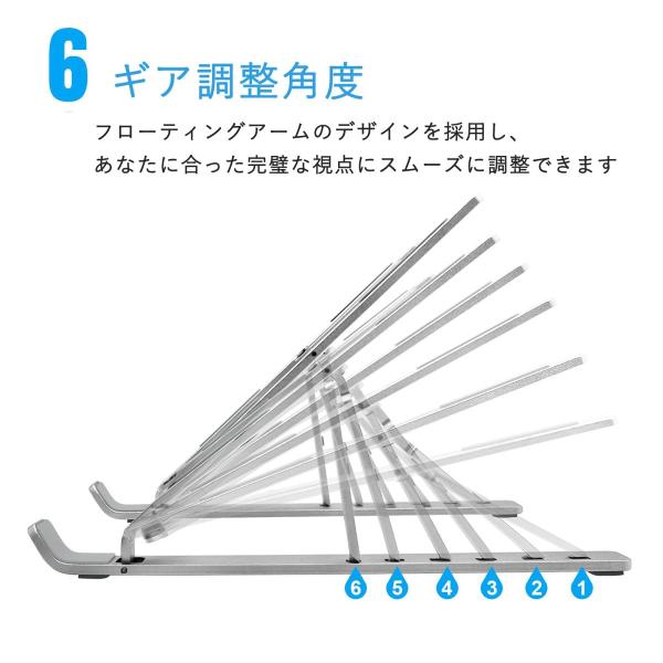 PCスタンド ノートパソコン用 折りたたみ式 調節可能 通気性 ポータブル ラップトップ ホルダー デスク用 アルミニウム製 エルゴノミクス