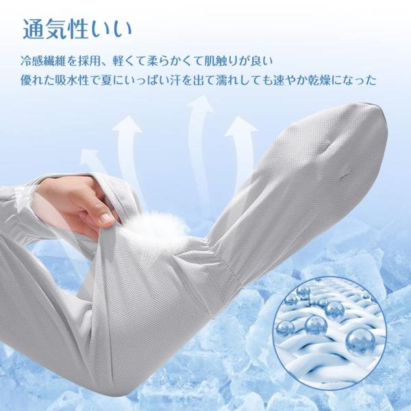 【POINT4】UVカット率99%UFP50+ 伸縮性、速乾性、吸湿性のある生地は暑い夏でも快適に着用出来ます。一度外して再度着用する際にもストレスを感じません。