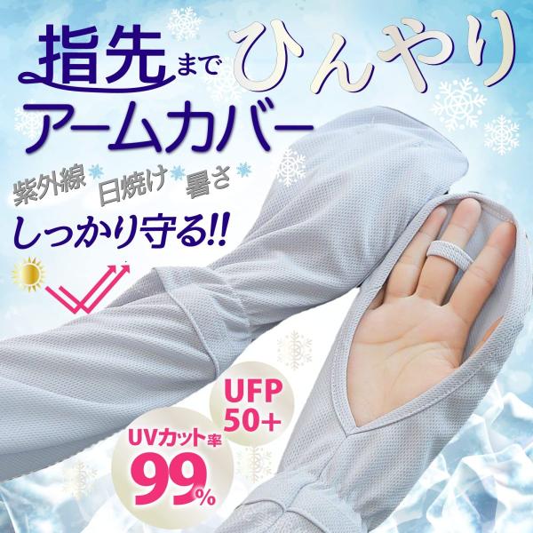 【POINT1】指先までしっかりとカバーできるアームカバーです。手の平は開いているので、着用しながらもスマホの操作や運転時ハンドルを握りやすい!
