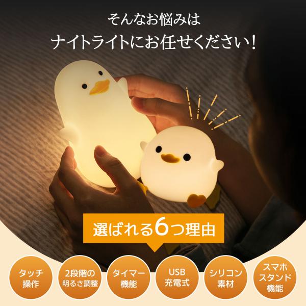 【可愛くて柔らかくナイトライト】小型のナイトライトはシリコーン素材で非常に柔らかく、握っている感触が非常に良いです。気分が悪いときはストレス発散として使用することもできるおもちゃのようなアイテムです。製品には20分のタイマー機能が付いており、20分後には自動的に消灯します。