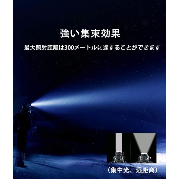 【USB充電式・長い航続時間】 超高輝度ヘッドライトには2つの大容量の充電可能な18650 バッテリーが付属しており付属のUSBケーブルを使って、モバイルバッテリーなどから繰り返し充電ができます。点灯モードによってフル充電で約6-14時間使用可能で、充放電で繰り返し使用できます。非常に経済的です。