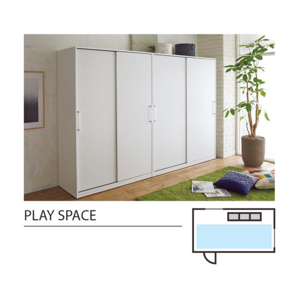 開閉スペースが必要ない引き戸式●引き戸式なので、開閉に場所をとらず、手前にソファーやベッドなどの家具があっても気にせず開け閉めできます。