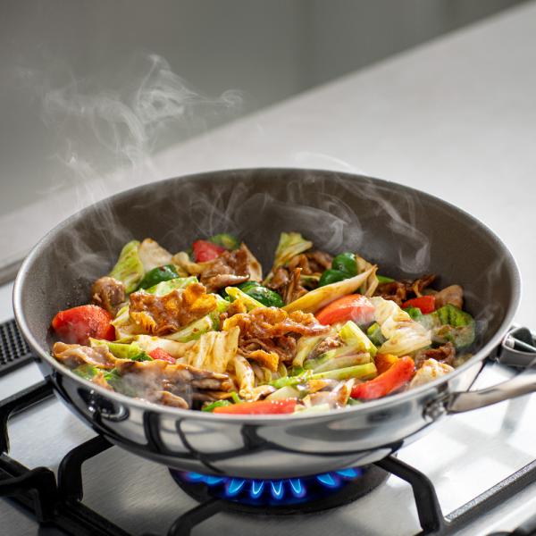 強火でガンガン使えるから、野菜炒めもしゃっきりとした仕上がり。強火で短時間で調理することができるので、野菜炒めは水分が出すぎずしゃっきり・・・