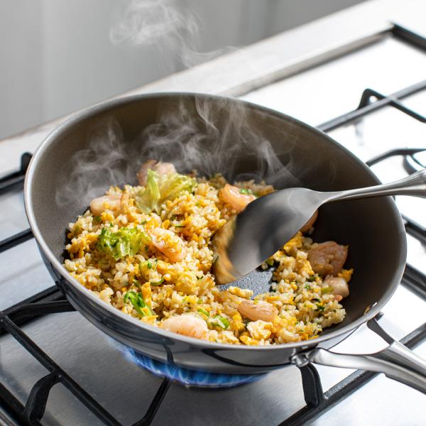 フッ素樹脂加工ではNGとされる強火での使用や、使用後すぐの水ジュッもOK。フッ素樹脂などのコーティングは長持ちさせるために弱火〜中火の使用が推奨されていることが多いです。また使用後アツアツの状態で水にジュっとつけることもNGとされがち。ですがこれはコーティングではないので強火でガンガン使え、使い終わったらすぐに洗うことができます。