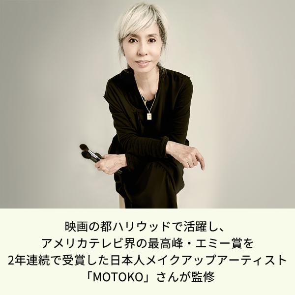 厚塗り感なくしっかりカバー、女優級のツヤを日常に。ハリウッドで活躍し、アメリカテレビ界の最高峰・エミー賞を2年連続で受賞した日本人メイクアップアーティスト「MOTOKO」さんが監修したファンデーションです。年齢肌のためにカラー調整を重ね、肌トーン・ツヤ感・カバー・崩れにくさを追求した、大人肌にフィットするファンデーション。