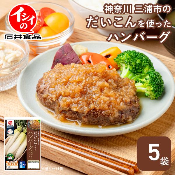 ハンバーグ 5袋 和風おろしソース 冷蔵 神奈川三浦市のだいこんを使ったハンバーグ レトルト 惣菜 無添加調理 ギフト 贈答 在宅 石井食品 公式 イシイ