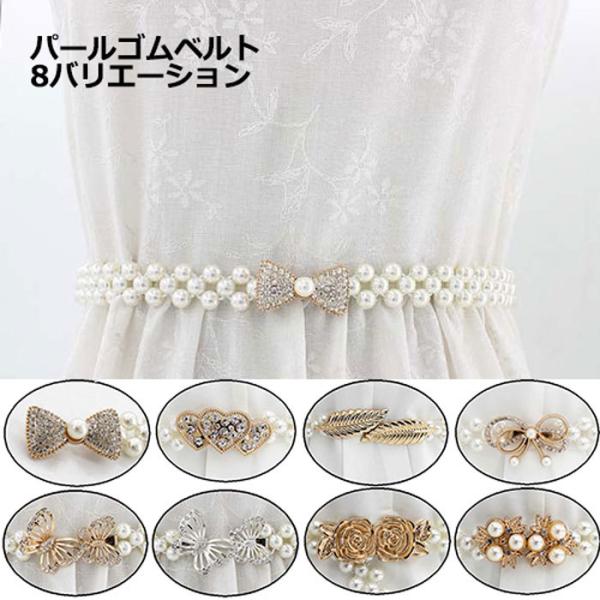 ベルト レディース ゴム おしゃれ パール ワンピース ドレス 穴なし 簡単 調節可能 ゴムベルト 結婚式 装飾 調整 引っ掛ける バックル