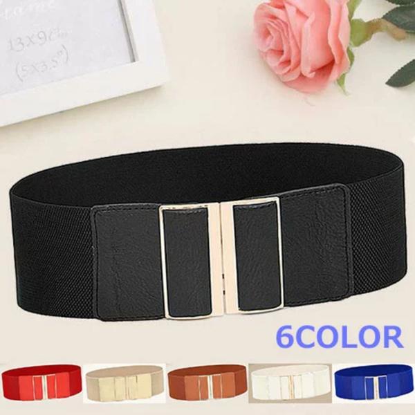 サッシュベルト スクエア 幅広 ゴムベルト レディースブラックゴールド バックル 金 エレガント コルセットベルト パーティードレス