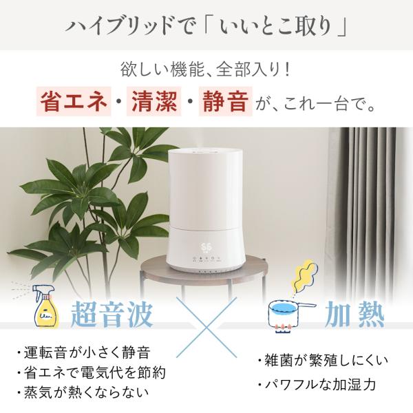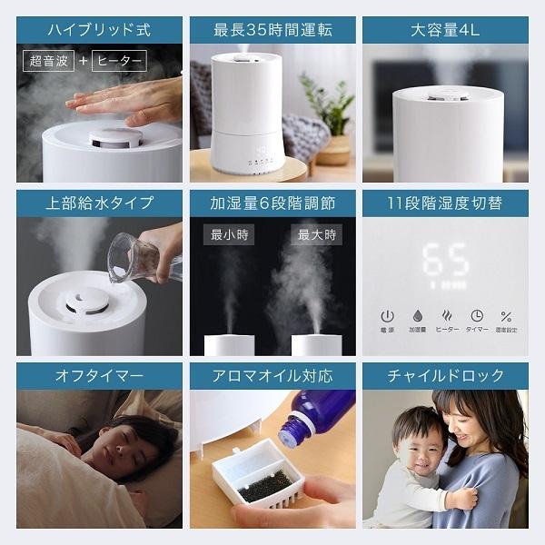 加湿器 ハイブリッド 4L 小型大容量 スチーム式 超音波 アロマ おしゃれ 上部給水 超音波式 卓上 除菌 静音 省エネ 加湿 ハイブリッド加湿機