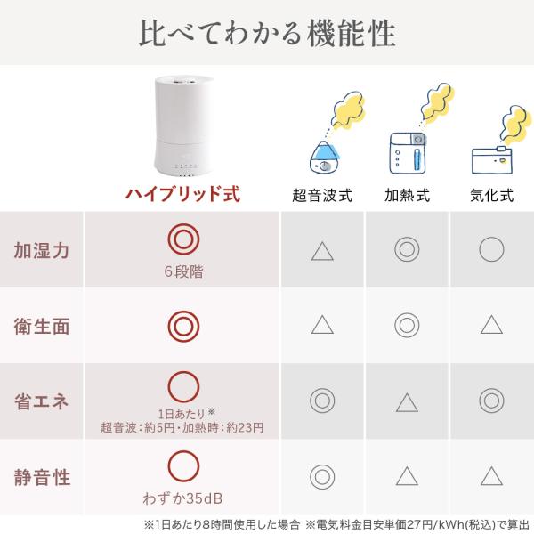 ◇ 省エネ 節電 エコ 送料無料 6畳 8畳 14畳 ホワイト ハイブリッド式 軽量 静か チャイルドロック タイマー 4L 4リットル 上から 給水
