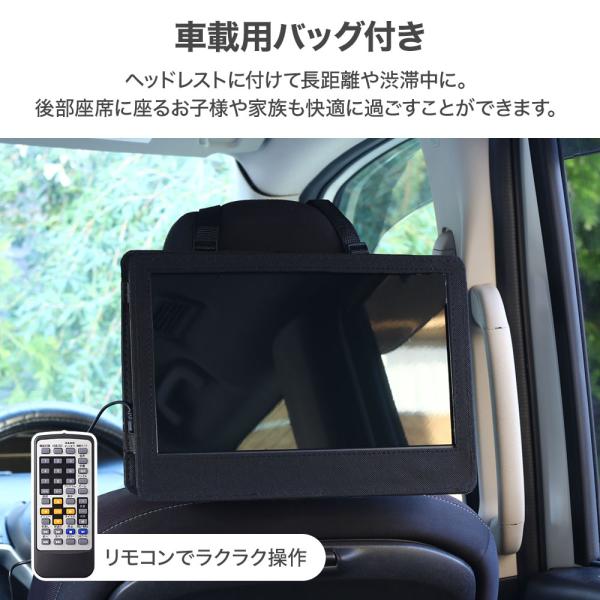 dvd 車用dvdプレーヤー ヘッドレストdvdプレーヤー リモコン付 回転モニター シガーソケット バッテリー 内臓 ドラマ 映画 音楽 CD USB SDカード mp3 再生 録音 コンパクト 車載用 持ち運び 折りたたみ 子供 子ども 子供部屋 レジューム レジューム機能 車載用バッグ 車載バッグ 家 AC リモコン おすすめ プレゼント ギフト 便利グッズ 送料無料 車 車載用dvdプレイヤー