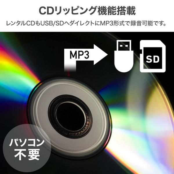 パソコン不要。CDからUSB/SDカードにMP3でダイレクト録音可能!
