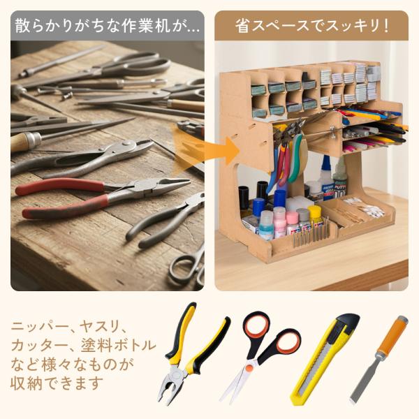 ペイントラック プラモデル 塗料ラック 塗装棚 MDF ニッパー ヤスリ カッター 塗料ボトル 収納 ガンプラ 模型 ホビーツール GK1