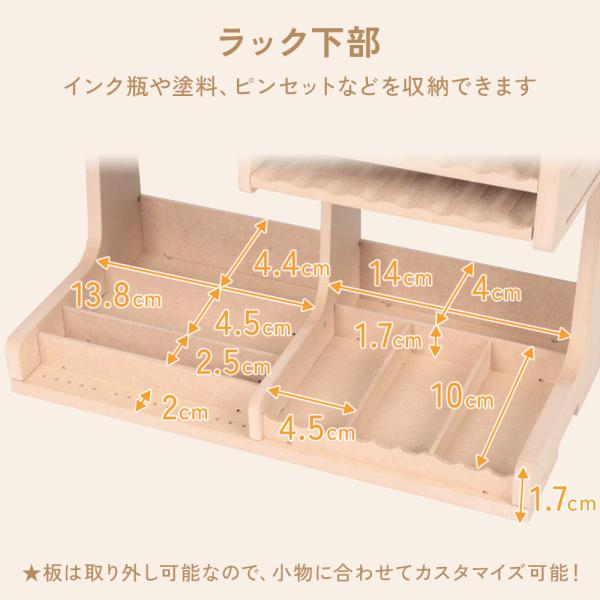 ラック下部…インク瓶や塗料、ピンセットなどを収納できます。