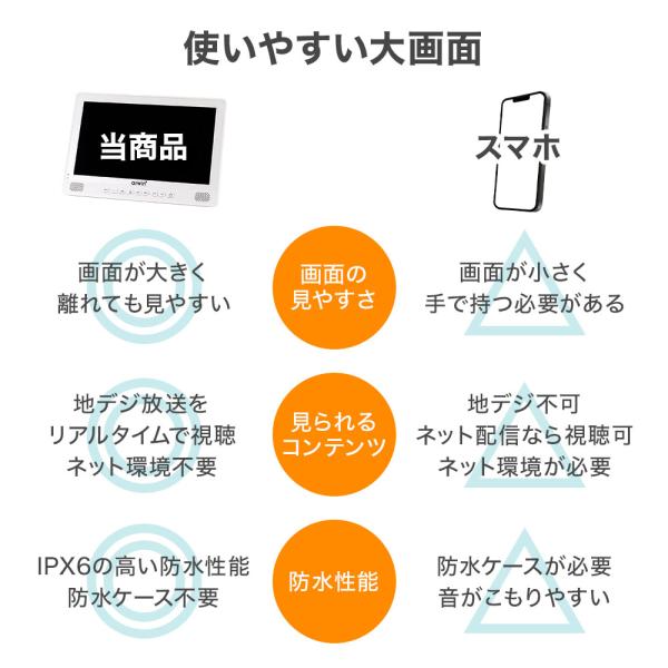 ポータブルテレビ 防水テレビ フルセグ 10インチ ラジオ