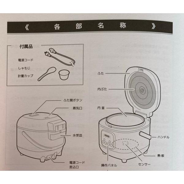 セット内容:本体、内ぶた、内釜、計量カップ、しゃもじ、電源コード、取扱説明書(保証書)