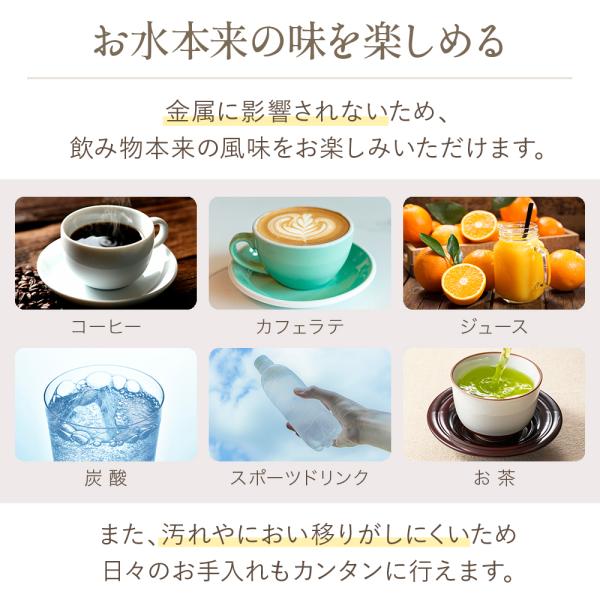 金属臭の心配がなく、飲み物本来の風味をお楽しみいただけます。